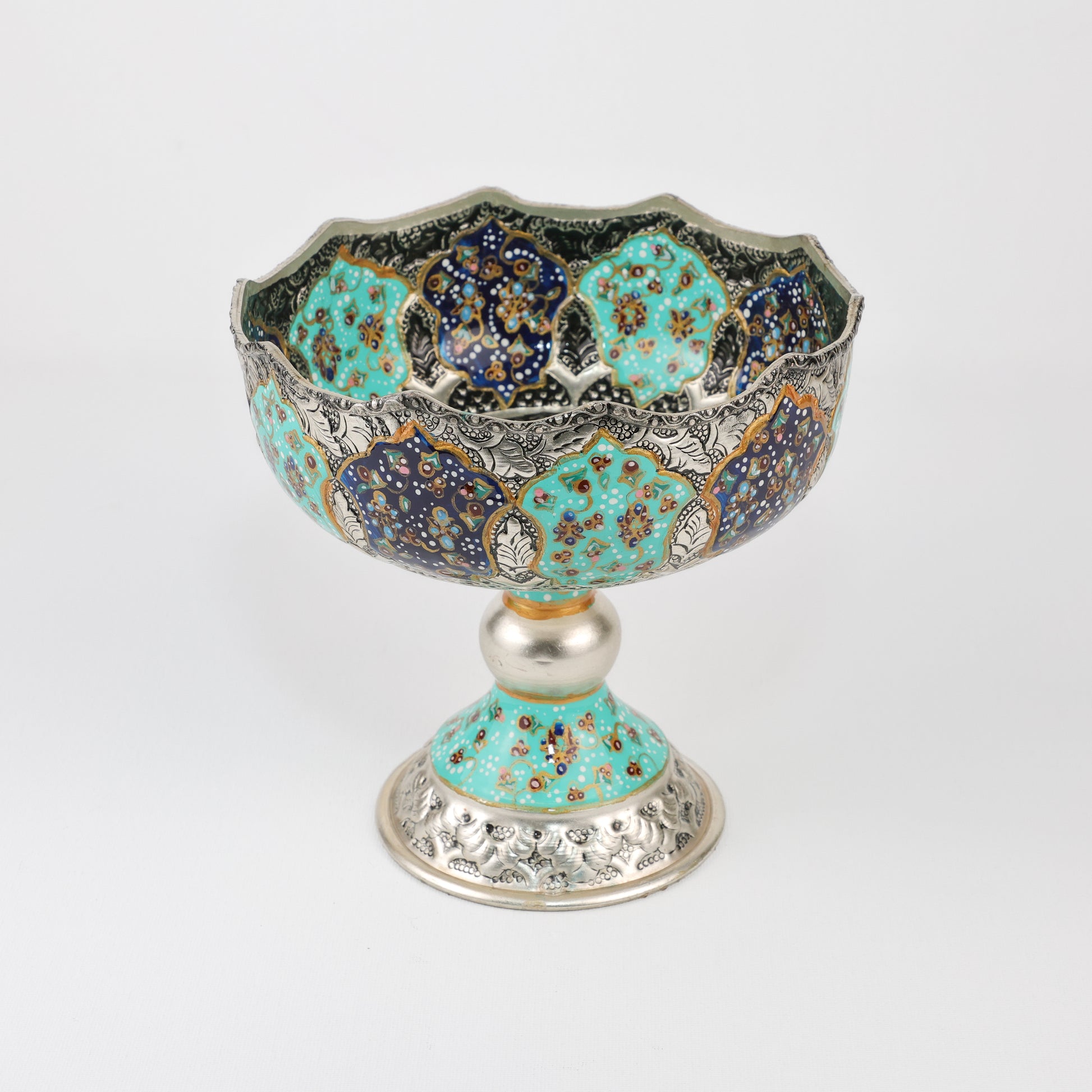 وعاء - مقاس 16 - وعاء للمكسرات - منقوش ومطلي - لون فيروزي