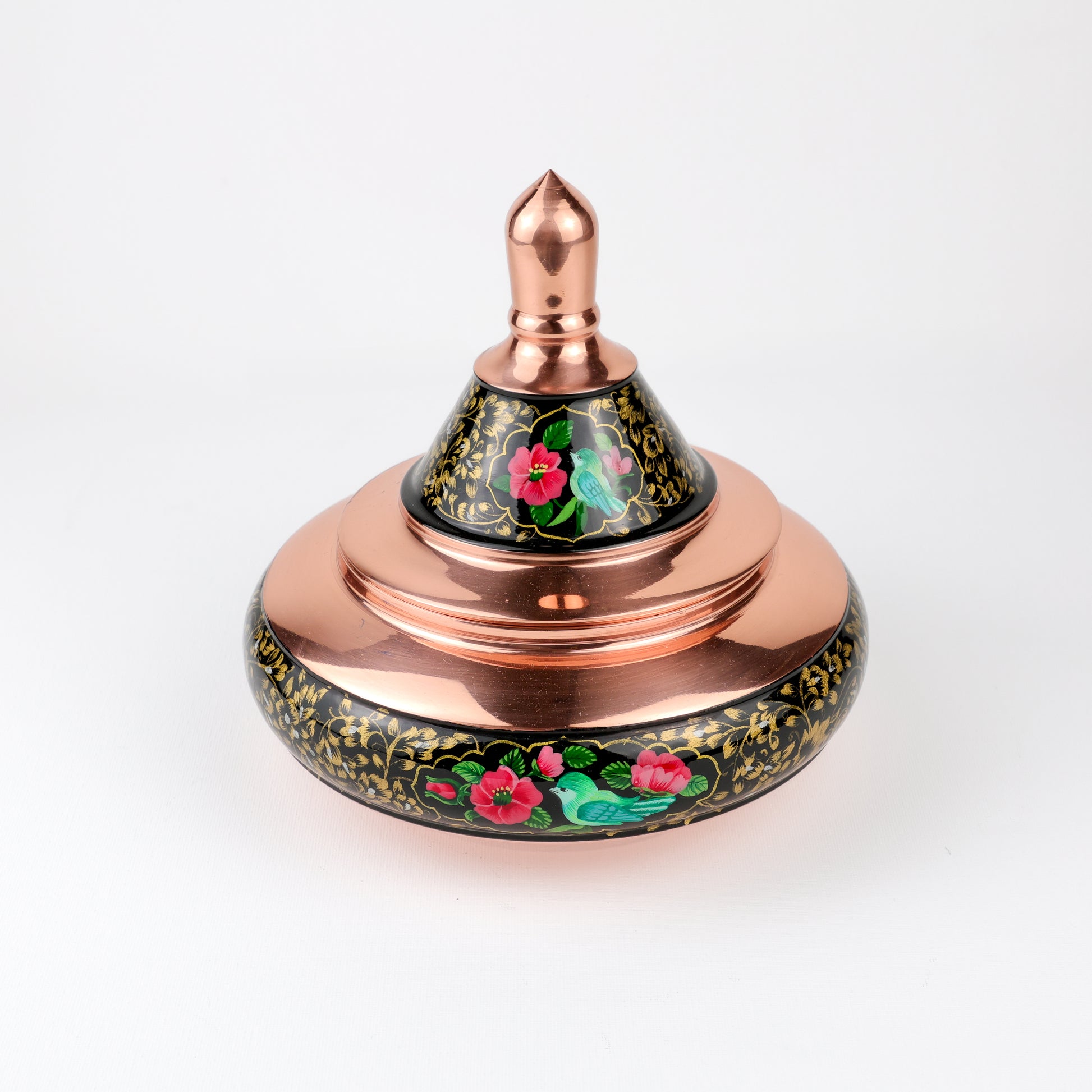 Copper art showcases the beauty of handcrafted metal through refined techniques such as hand painting and diamond-cut engraving. Each piece is carefully shaped and decorated by skilled artisans, creating delicate patterns and light-reflecting details.