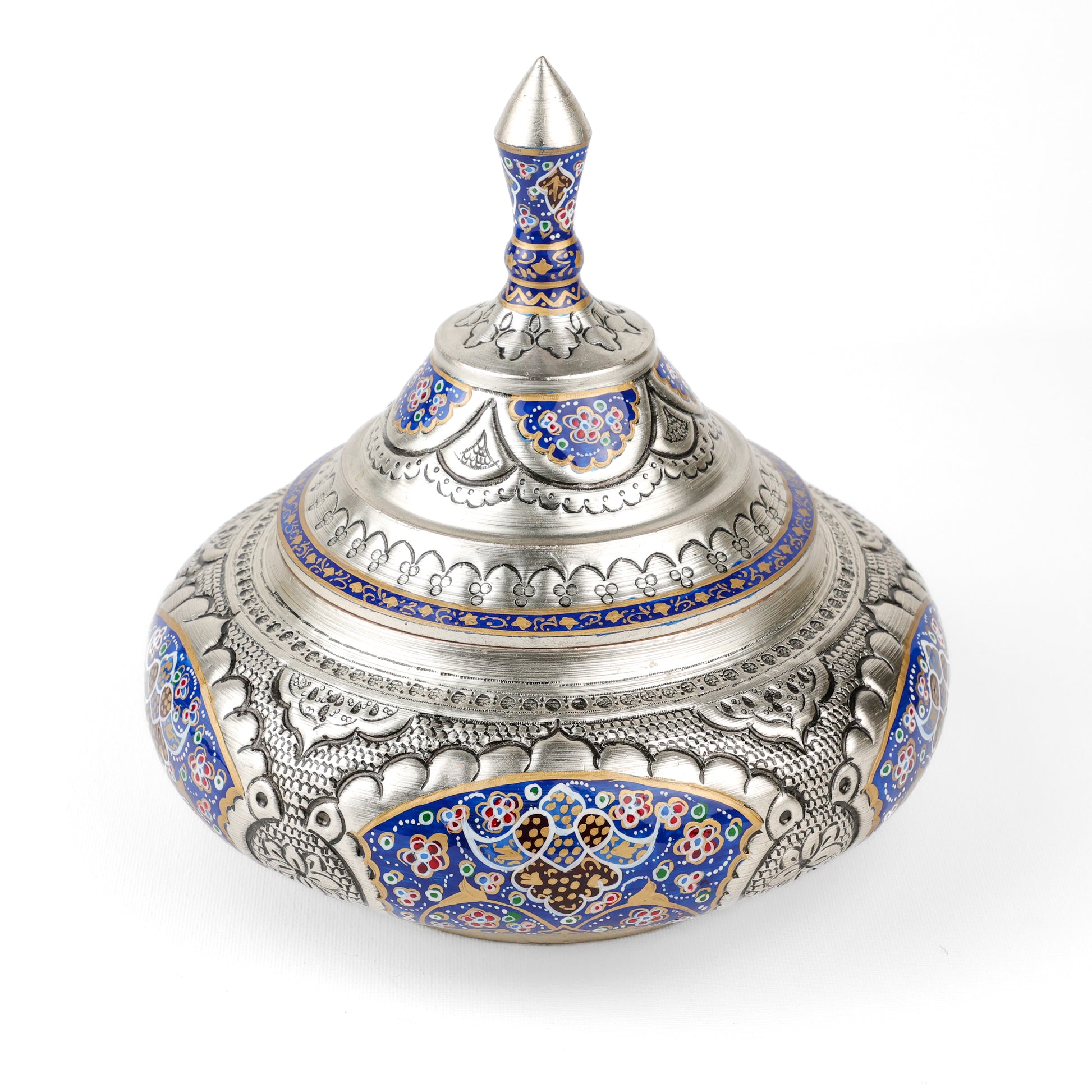 Copper art showcases the beauty of handcrafted metal through refined techniques such as hand painting and diamond-cut engraving. Each piece is carefully shaped and decorated by skilled artisans, creating delicate patterns and light-reflecting details.