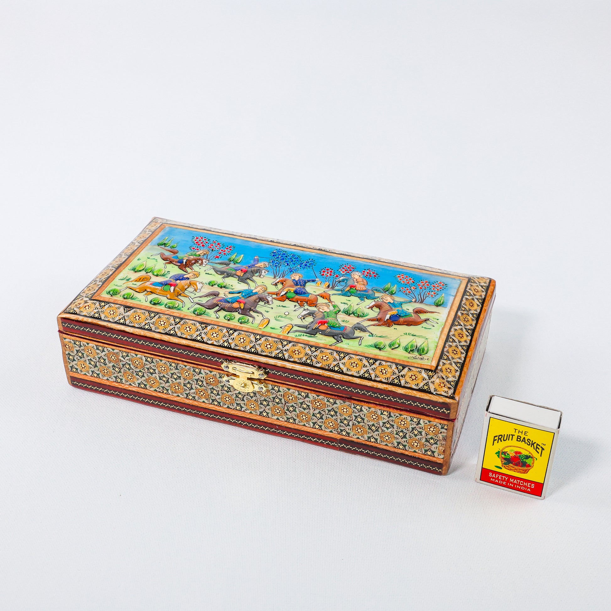 Glove Box – Hunting Scene Painting – Velvet Interior – Size 12 × 22 cm
