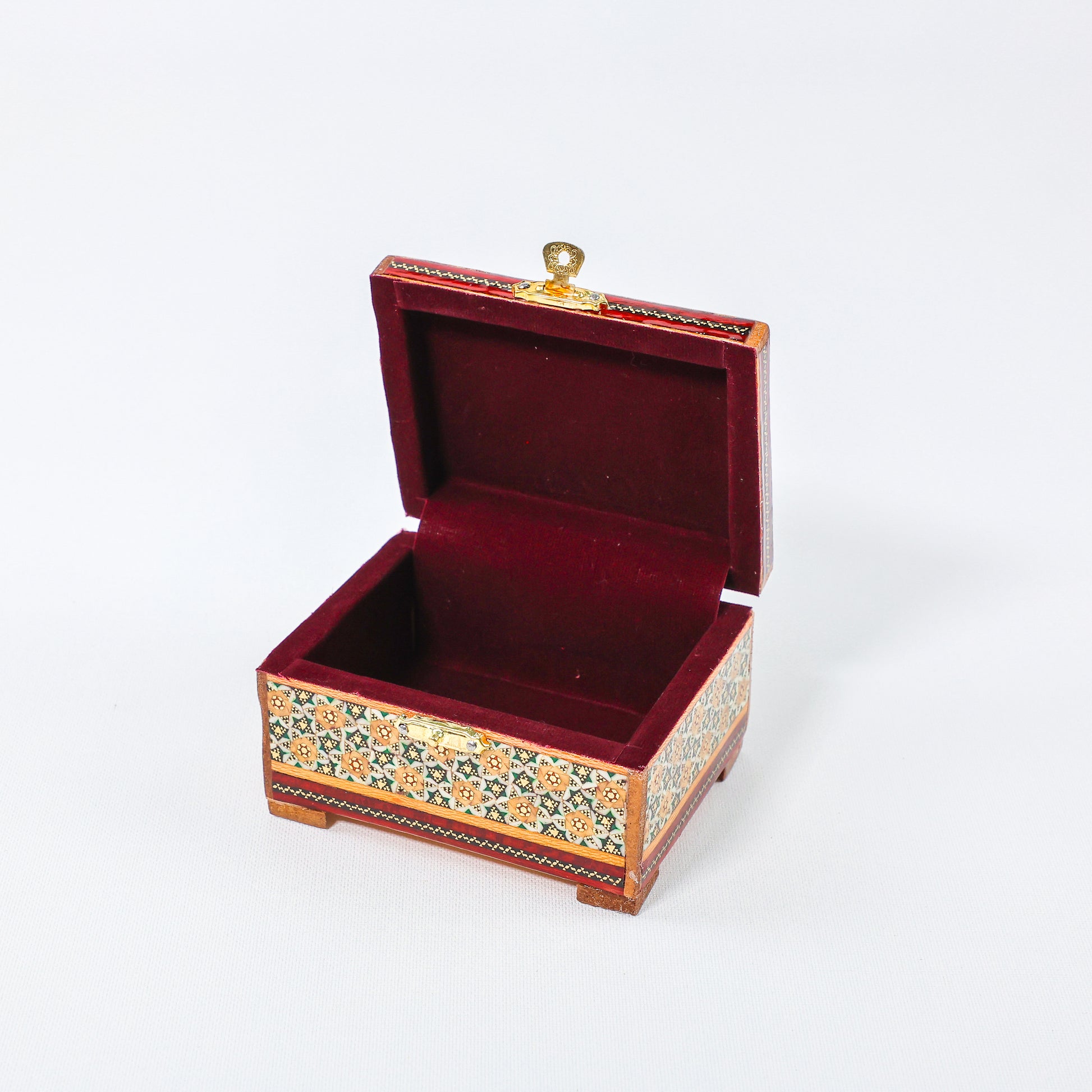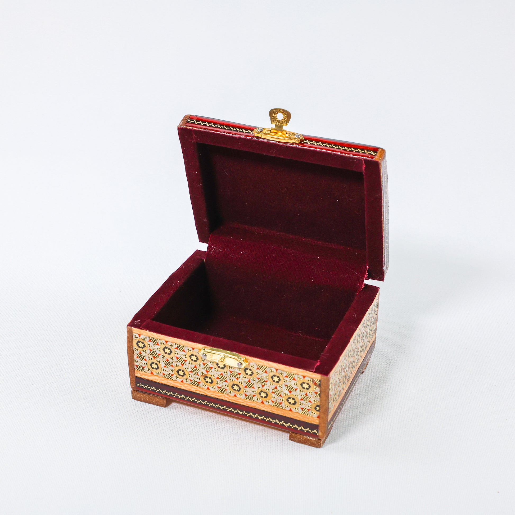 علبة مجوهرات بمفصل – نقش گل ومرغ – من الداخل مخمل – المقاس 8 × 11 سم