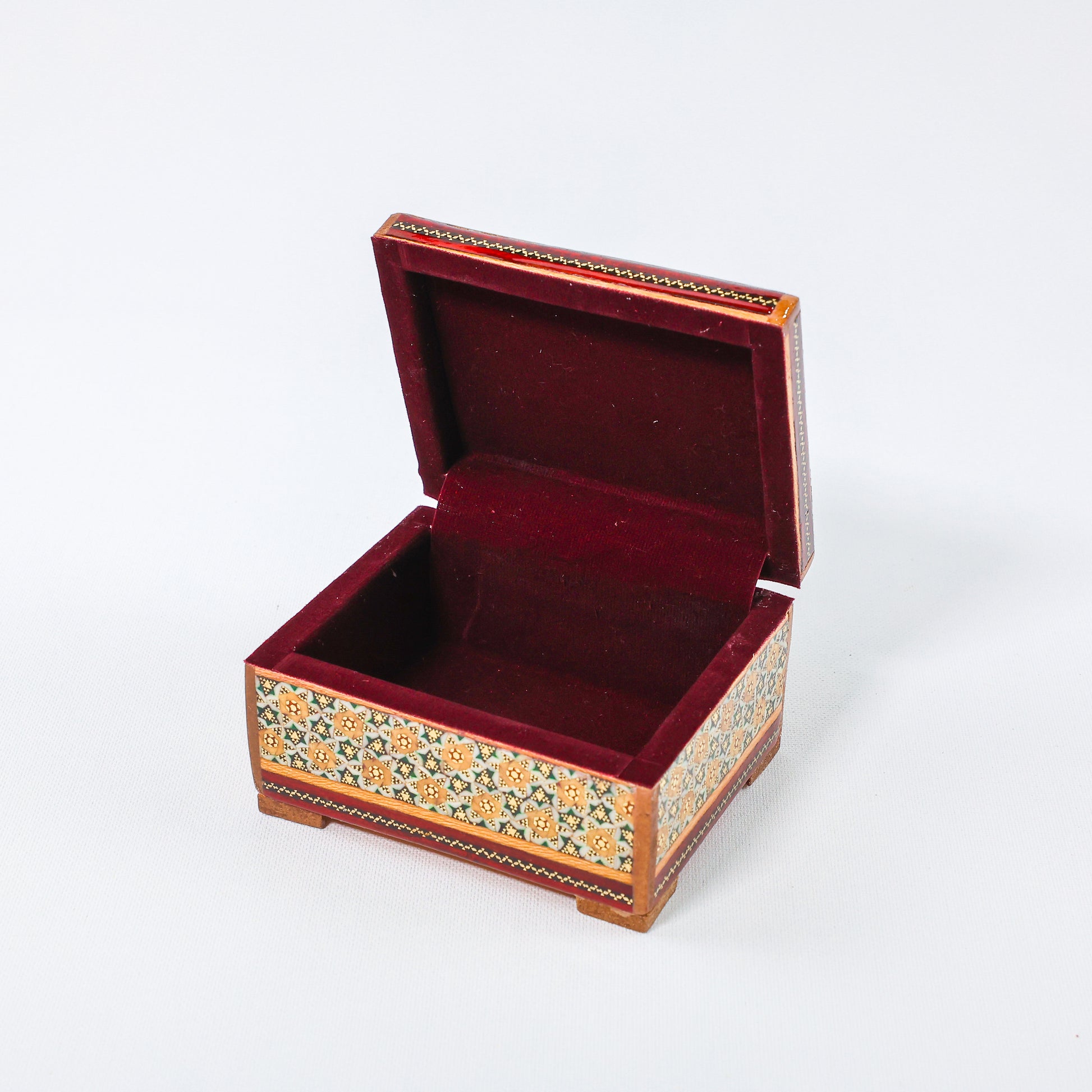 علبة مجوهرات بمفصل – نقش صيد – من الداخل مخمل – المقاس 8 × 11 سم