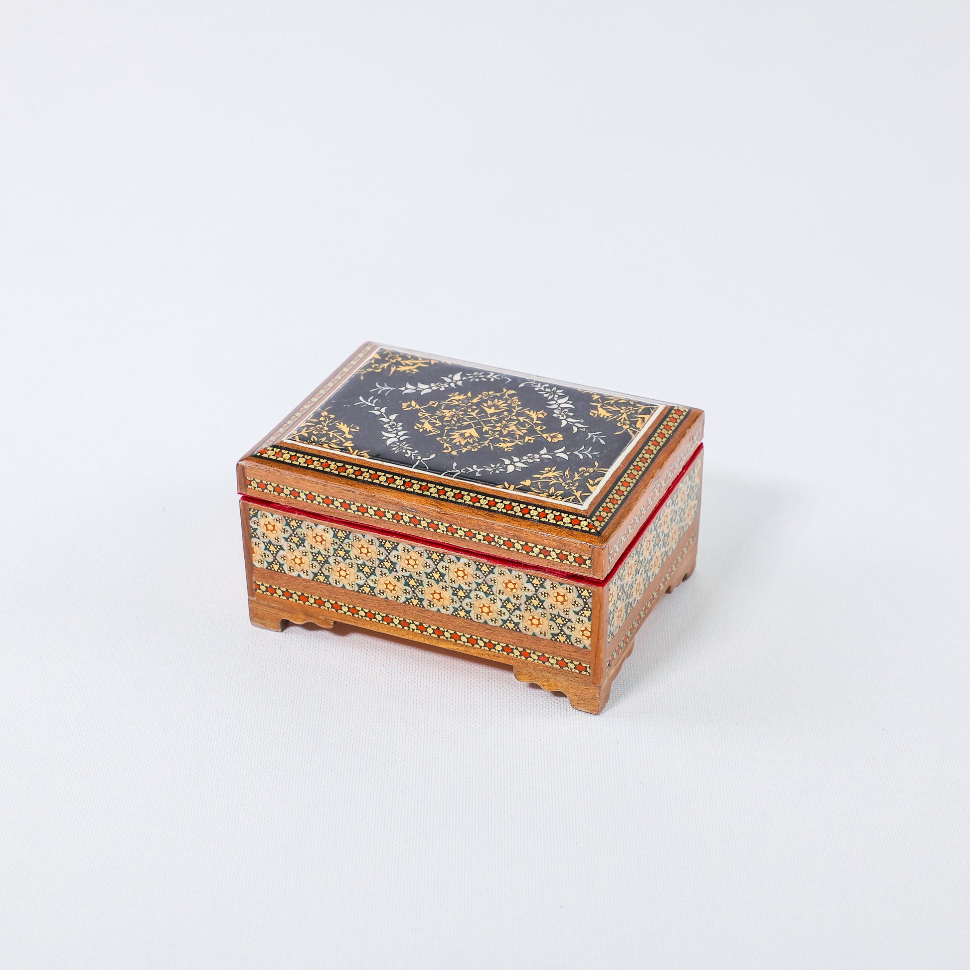 Hinged Jewelry Box – Tazhib Painting – Velvet Interior – Size 8 × 11 cm