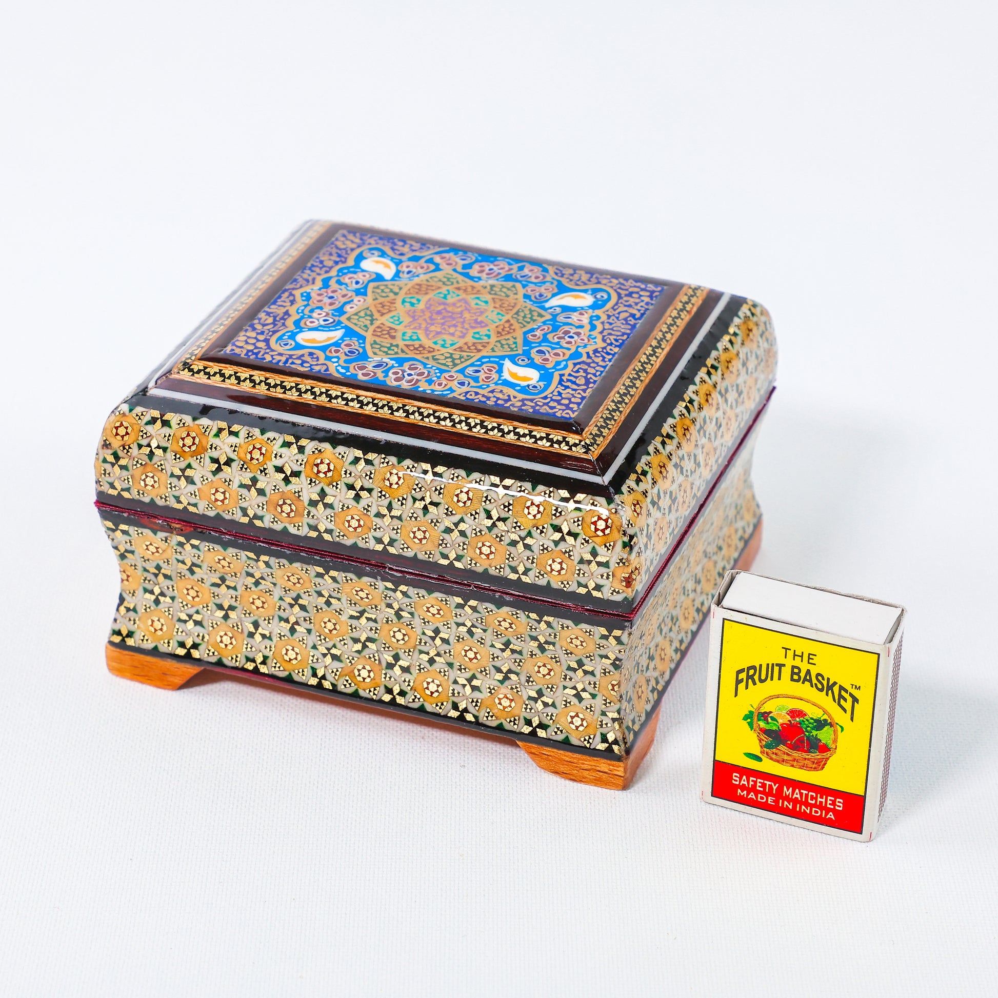 Jewelry Box – Full Khatam – Tazhib Painting – Velvet Interior – Size 10 × 12 cm
