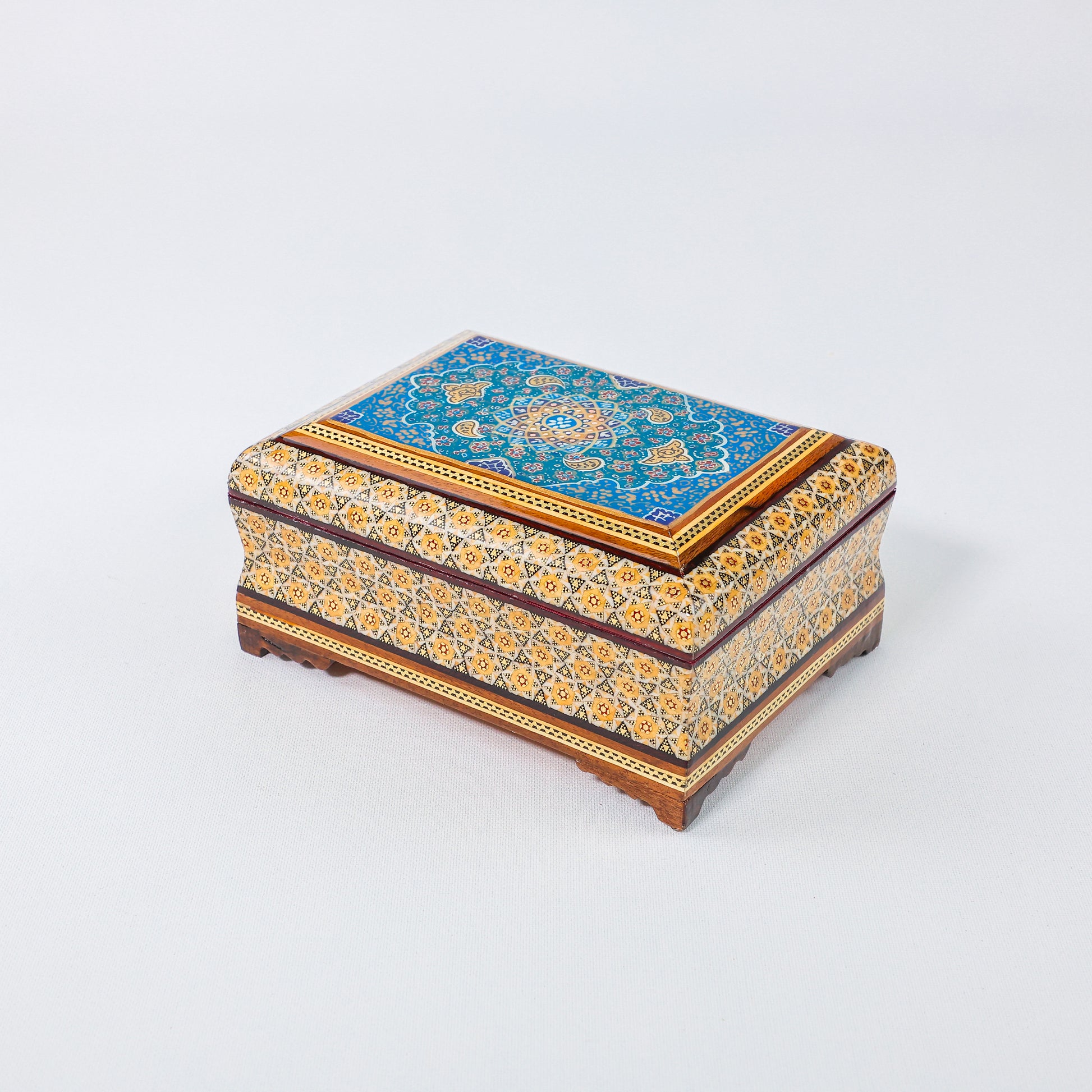 Jewelry Box – Full Khatam – Velvet Interior – Tazhib Painting – Size 13 × 18 cm