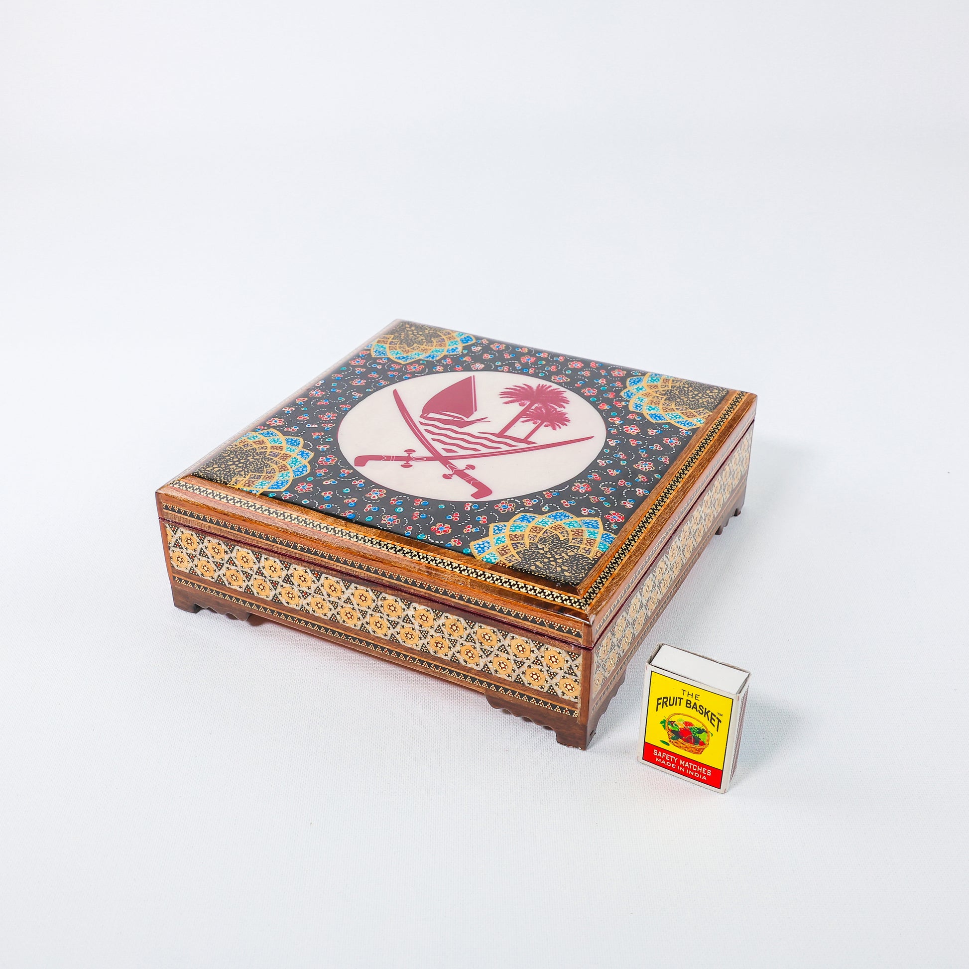 Khatam Box – Velvet Interior – State of Qatar New Emblem Design – Size 20 × 20 cm