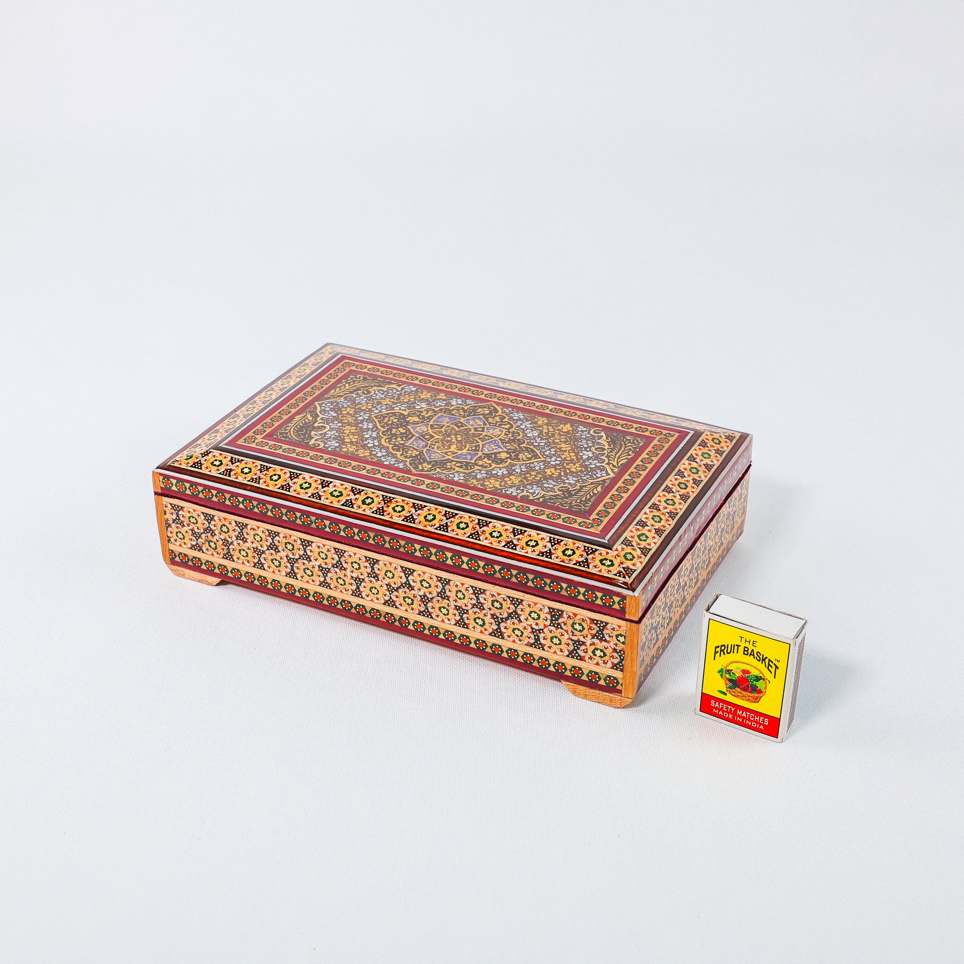 Khatam Box – Velvet Interior – Tazhib Painting – Size 14 × 22 cm