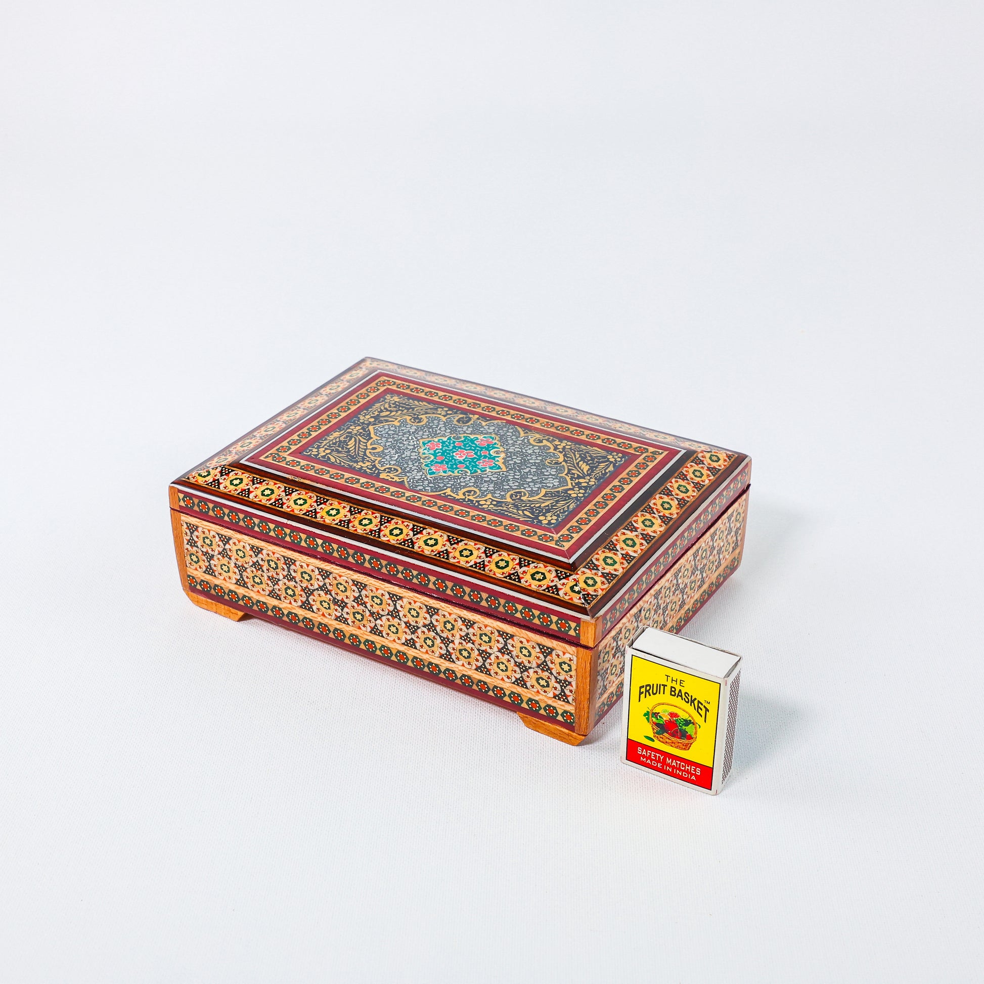 Khatam Box – Velvet Interior – Tazhib Painting – Size 18 × 13 cm