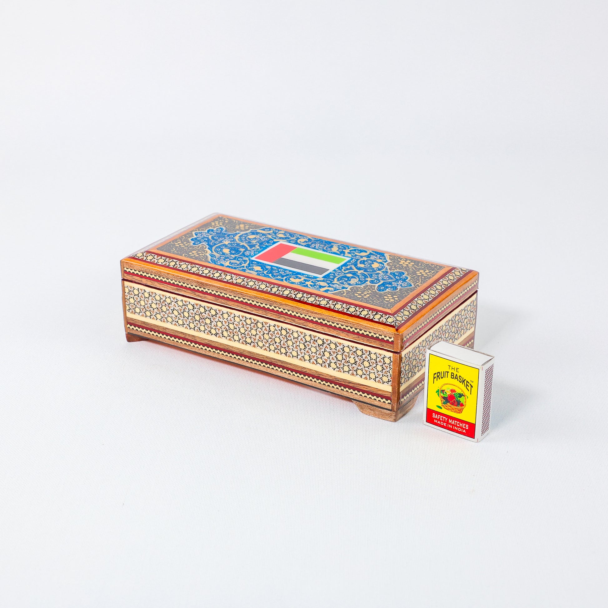 Khatam Box – Velvet Interior – UAE Flag Design – Size 20 × 10 cm