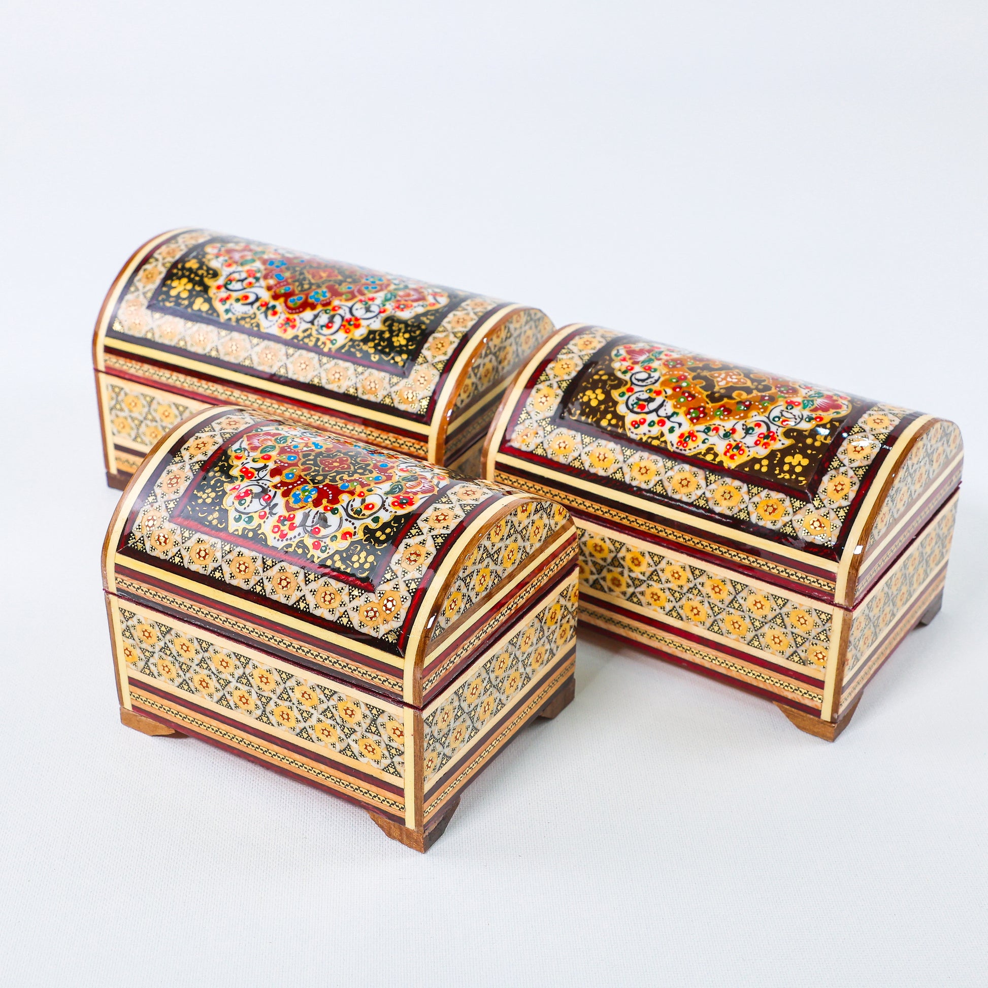 Khatam Chest – Tazhib Painting – Velvet Interior – Size 10 × 12 cm