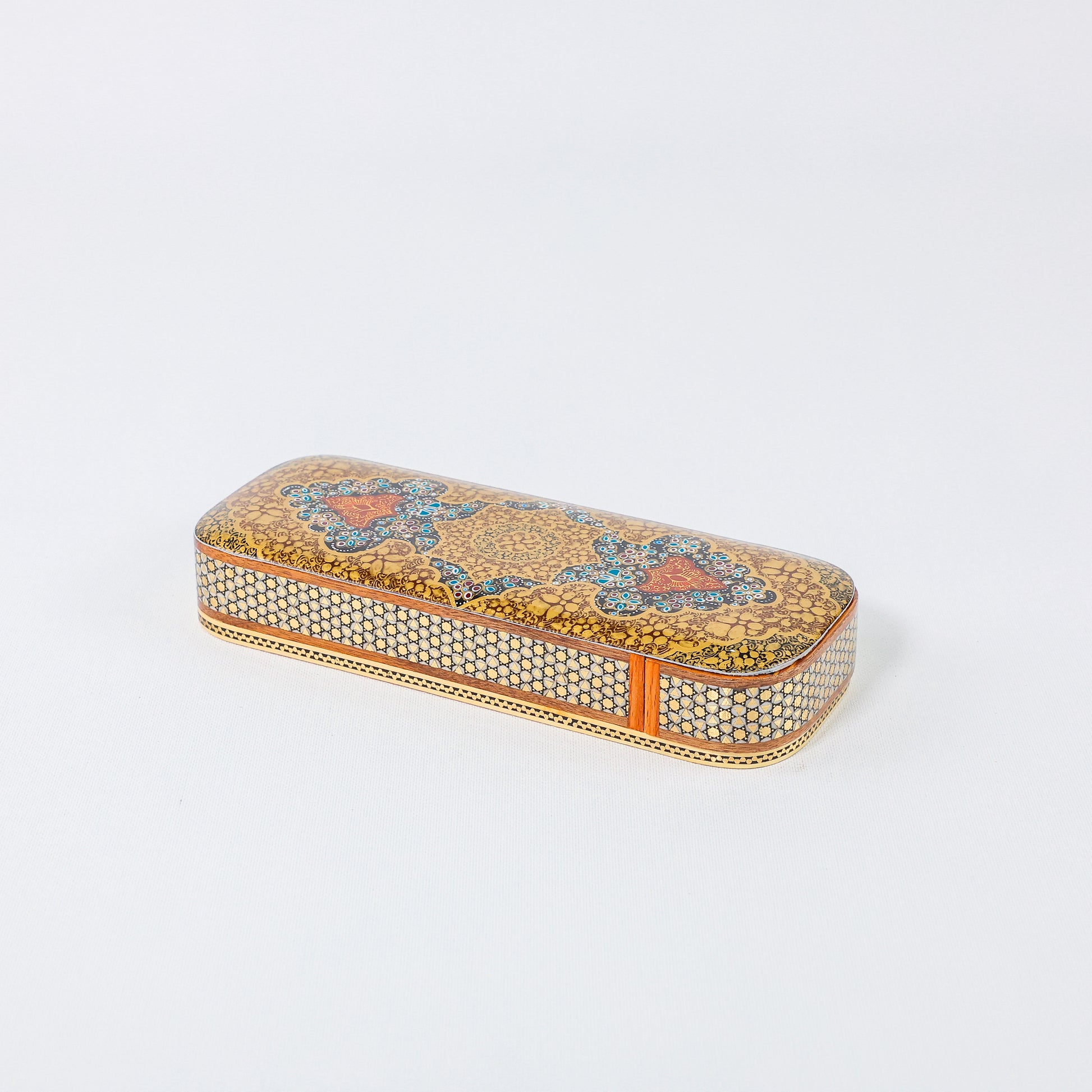 Khatam Slide Box – Rounded Edge Double Compartment – Glass Khatam – Beechwood Interior