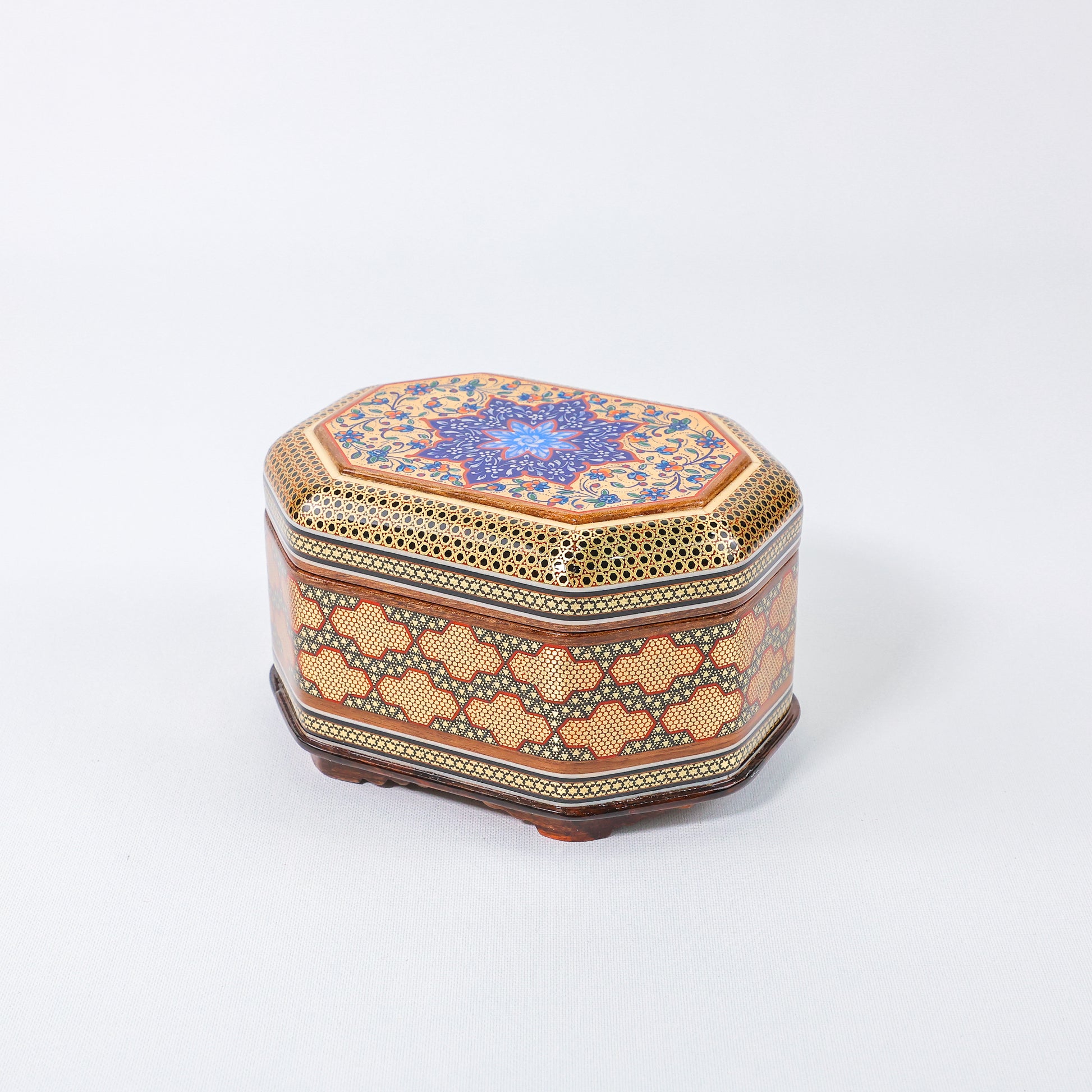 Rectangular Jewelry Box – Full Khatam – Hand-Painted – Khatam Interior – Size 14 × 18 cm