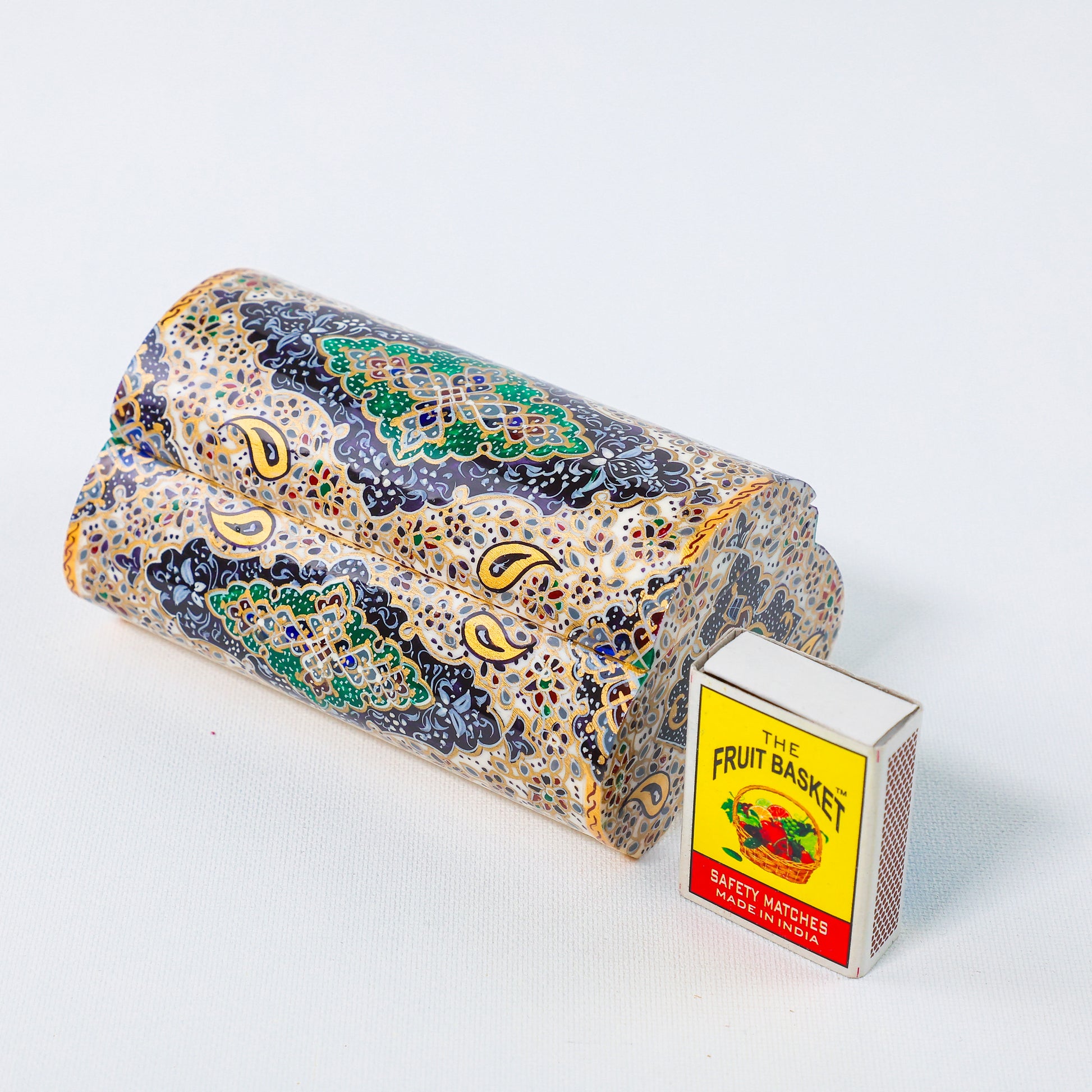 علبة من عظم الجمل – شكل هلالي – زخرفة تذهيب – المقاس 12 سم