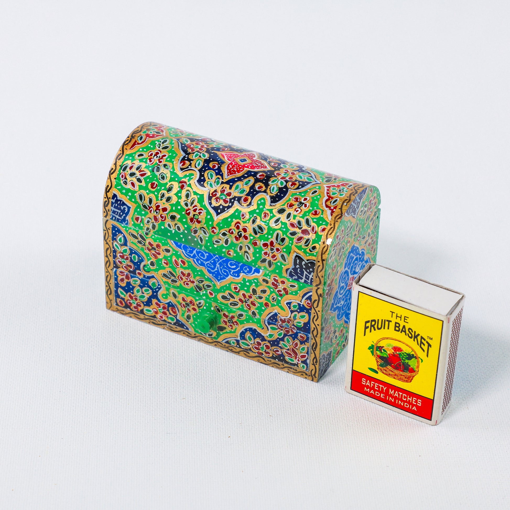 Camel Bone Box – Single Drawer – Flower & Bird Painting – Size 9 cm