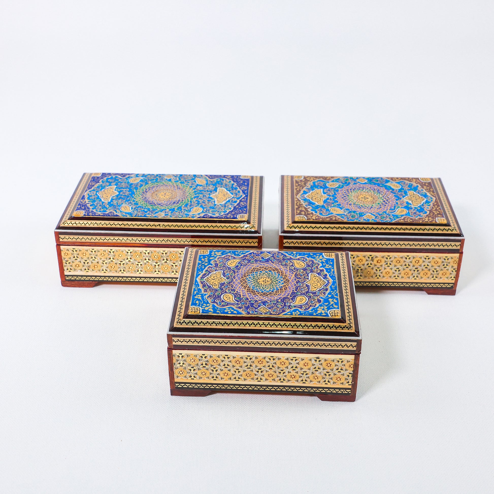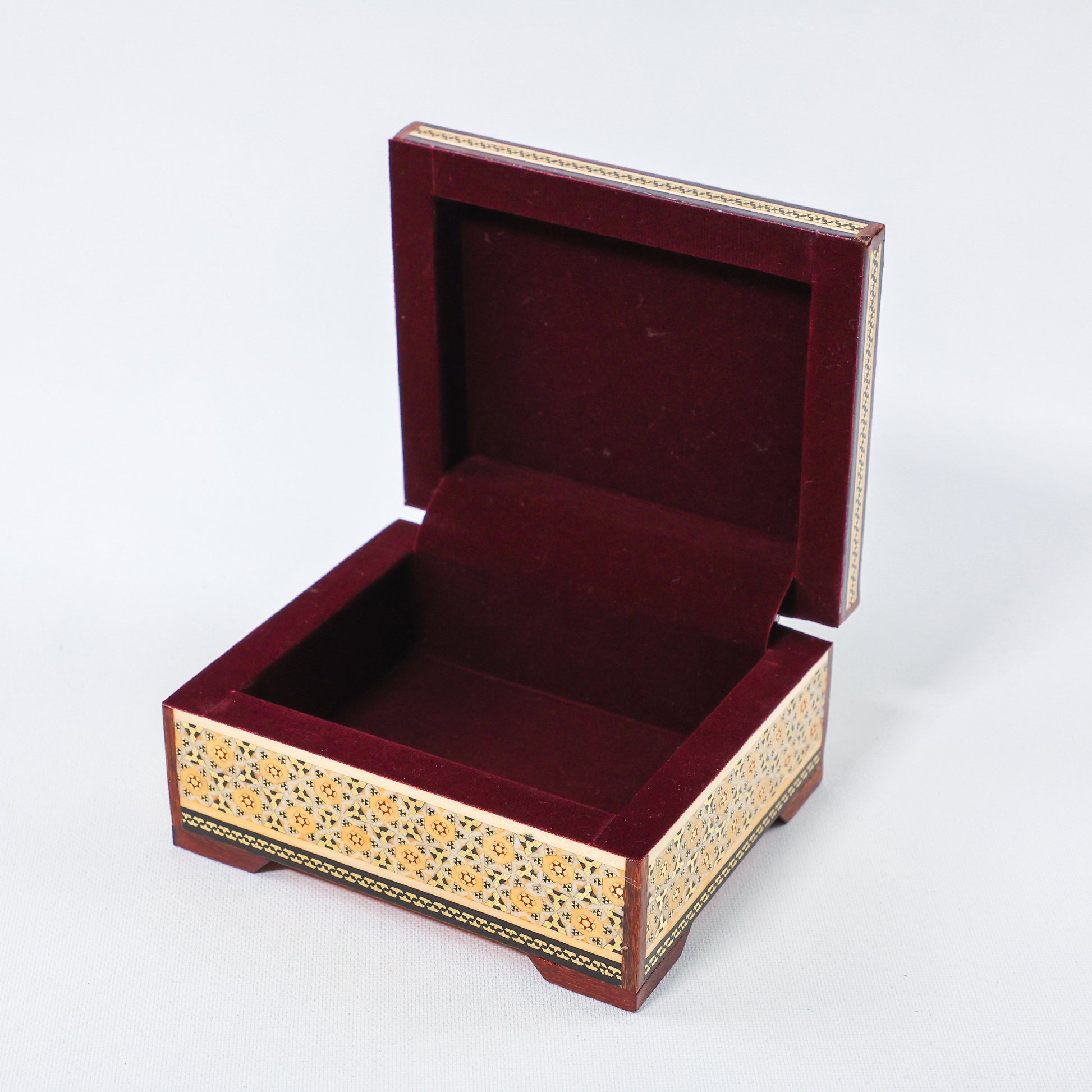 Jewelry Box – Khatam with Tazhib Painting – Velvet Interior – Size 10 × 12 cm