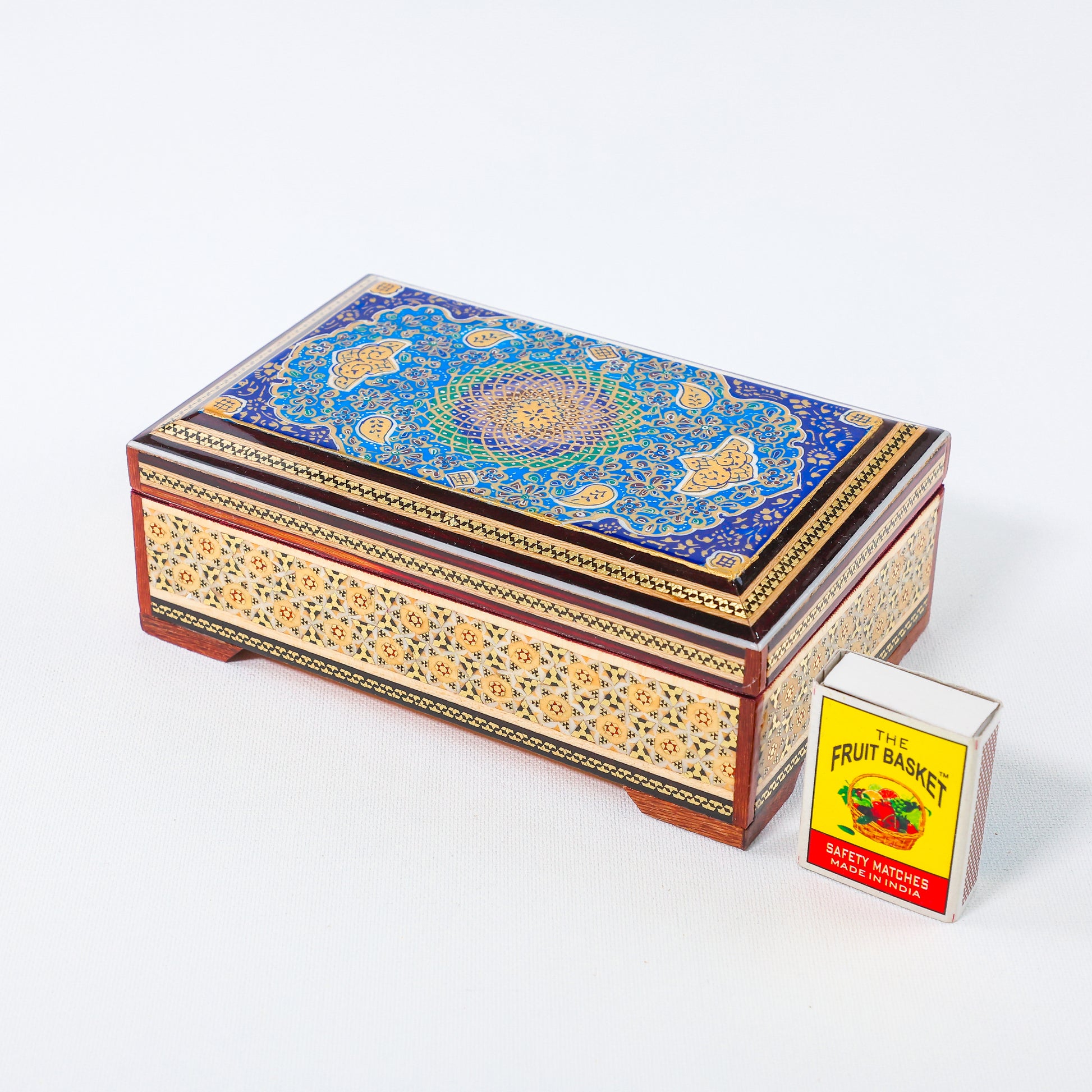 Jewelry Box – Khatam with Tazhib Painting – Velvet Interior – Size 10 × 16 cm