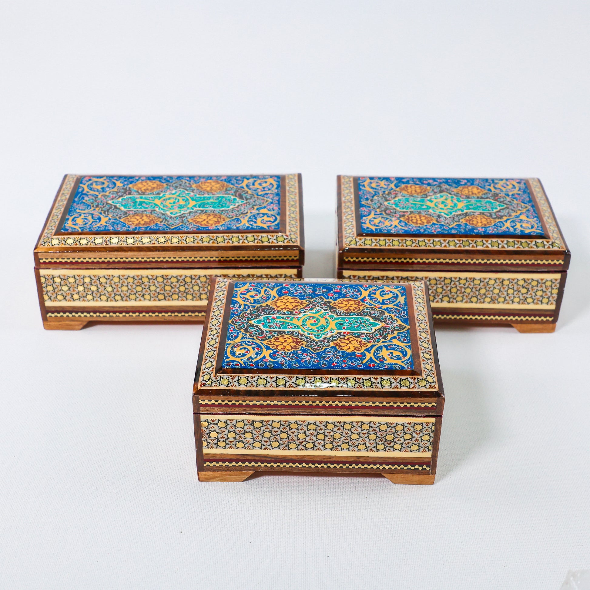 Khatam Box – Tazhib Painting – Velvet Interior – Size 12 × 10 cm