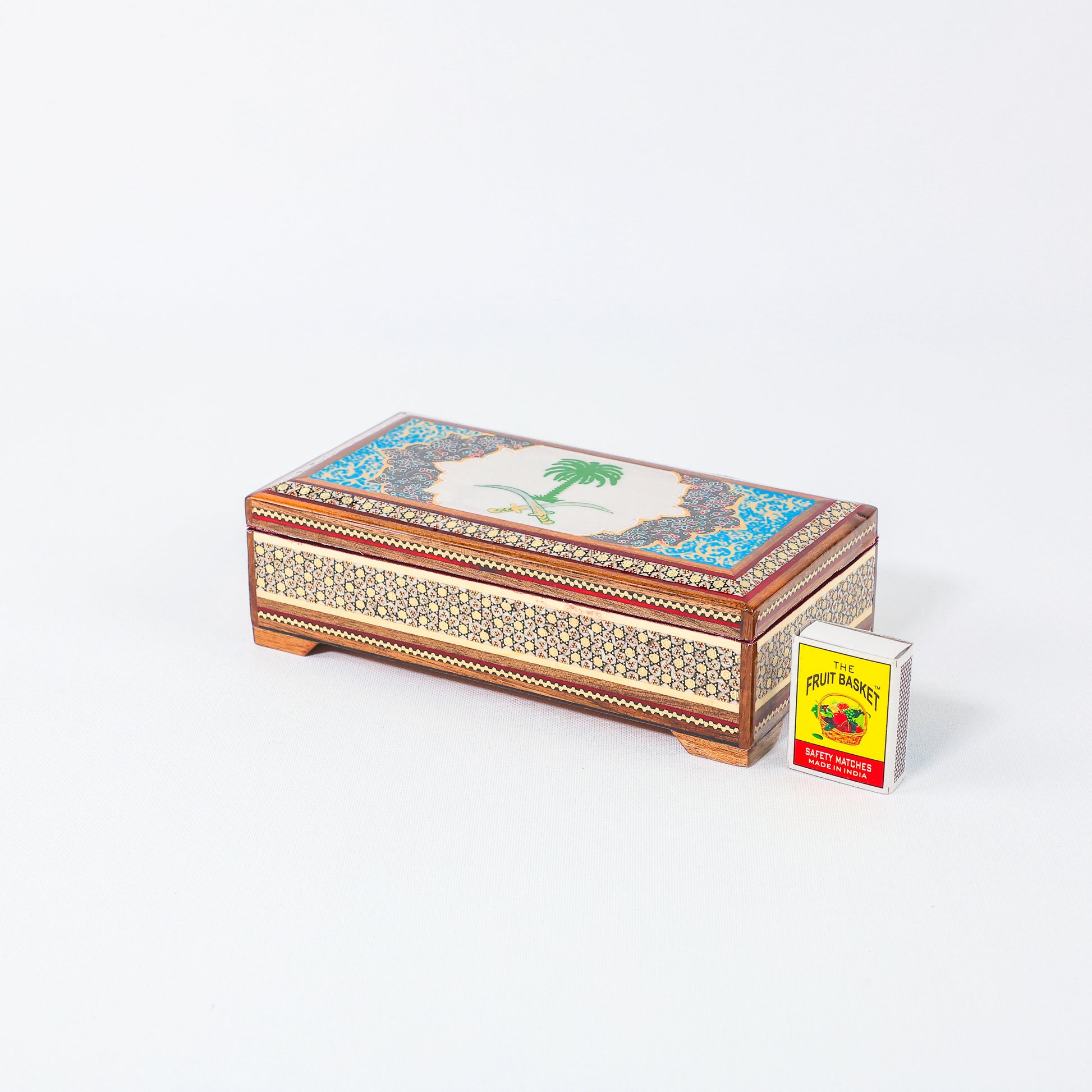 Khatam Box – Velvet Interior – Saudi State Emblem Design – Size 20 × 10 cm