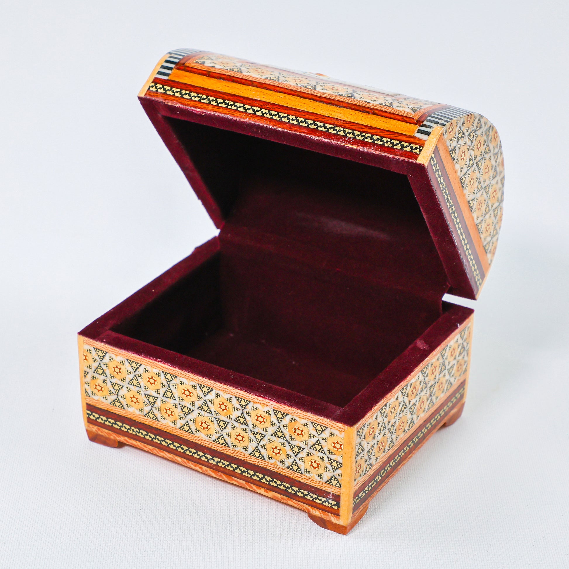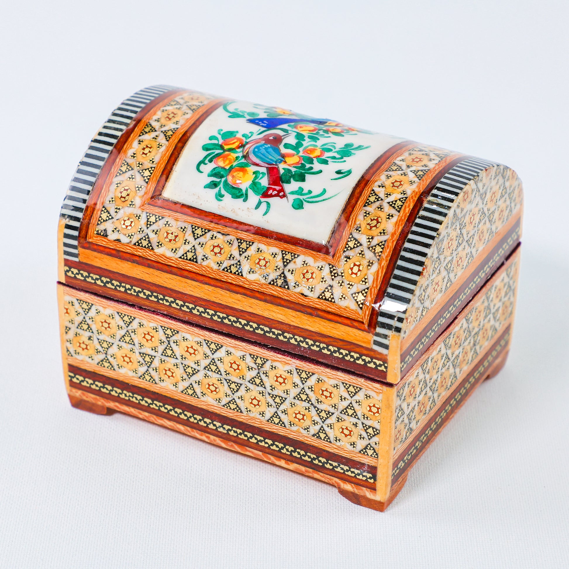 Khatam Chest – Flower & Bird Painting – Velvet Interior – Size 10 × 14 cm