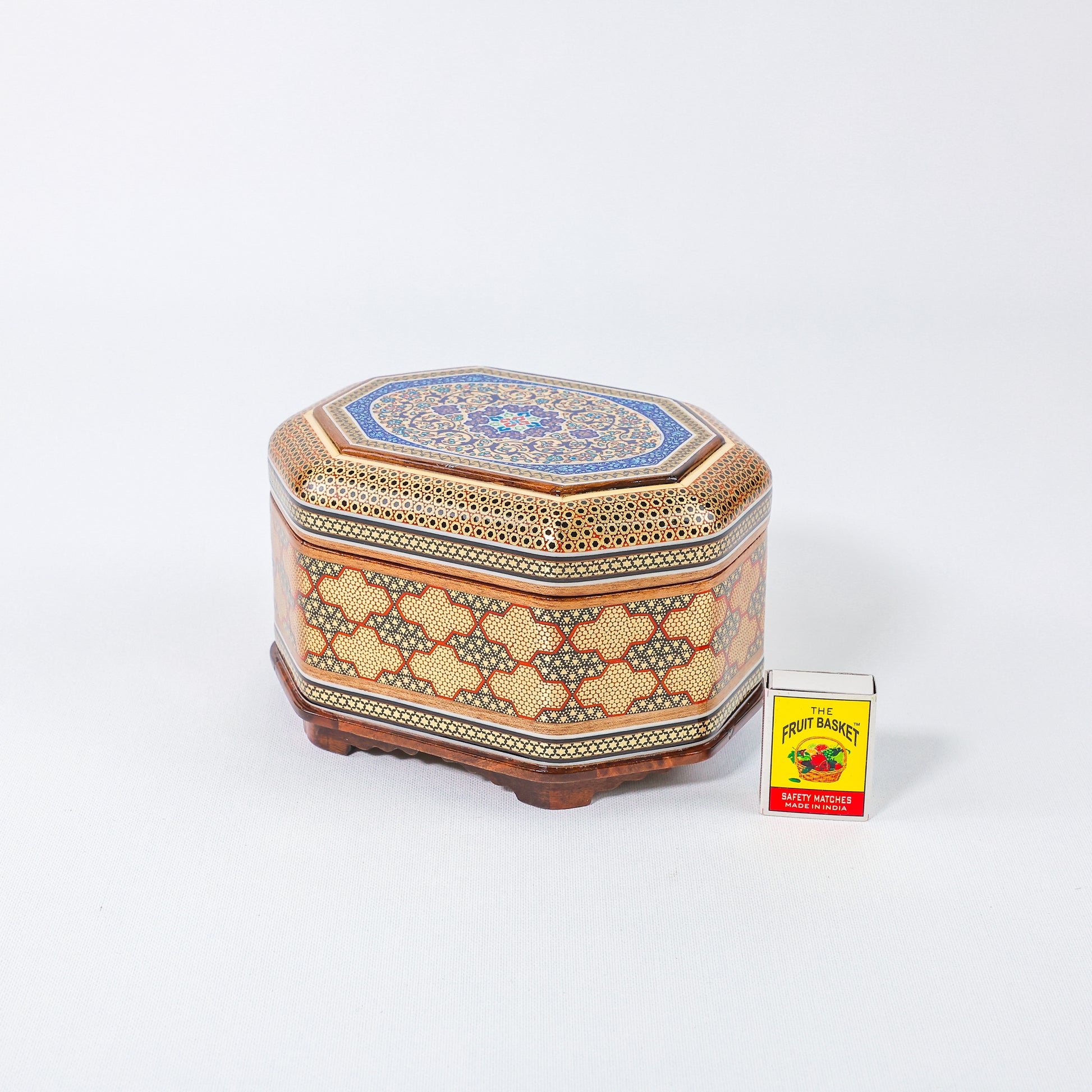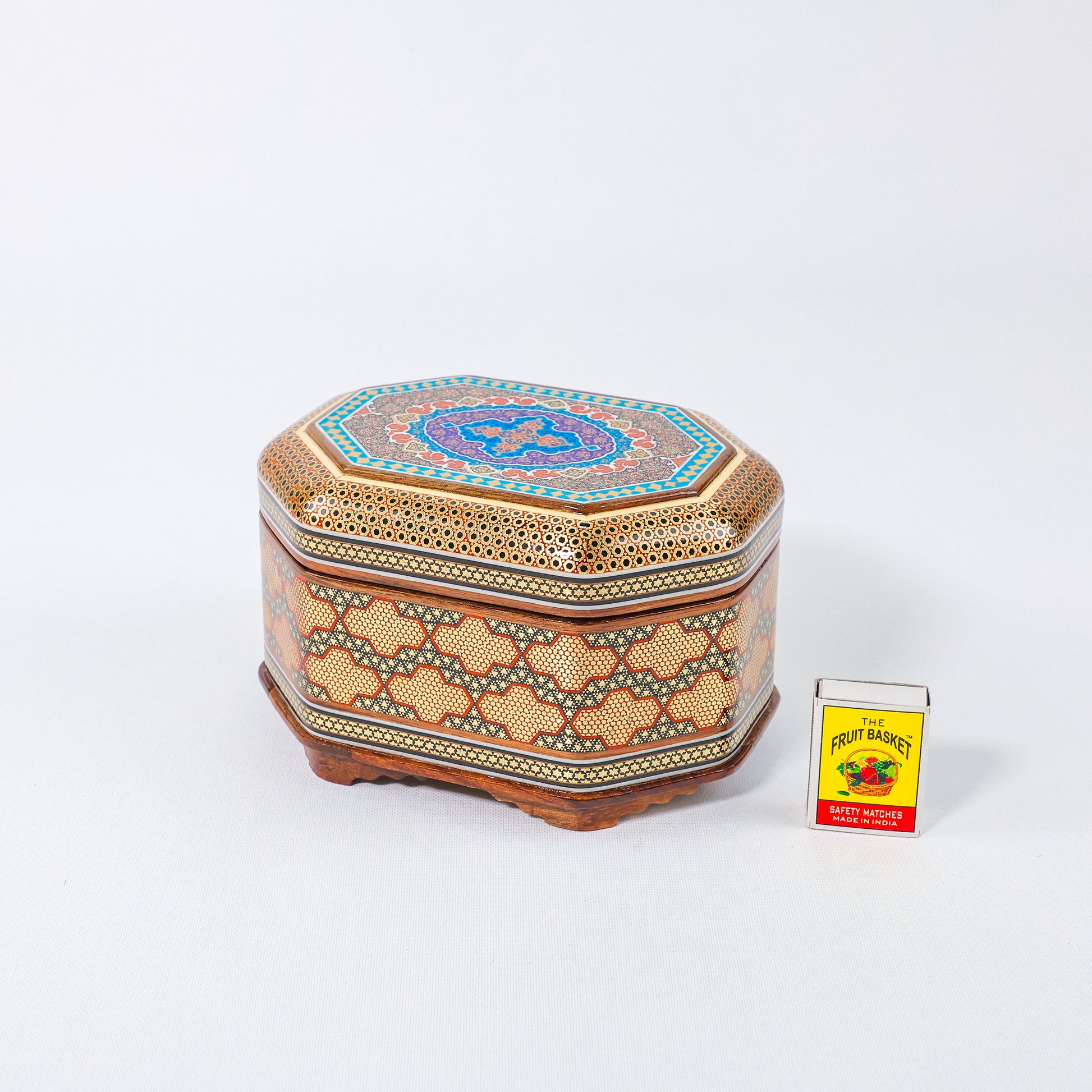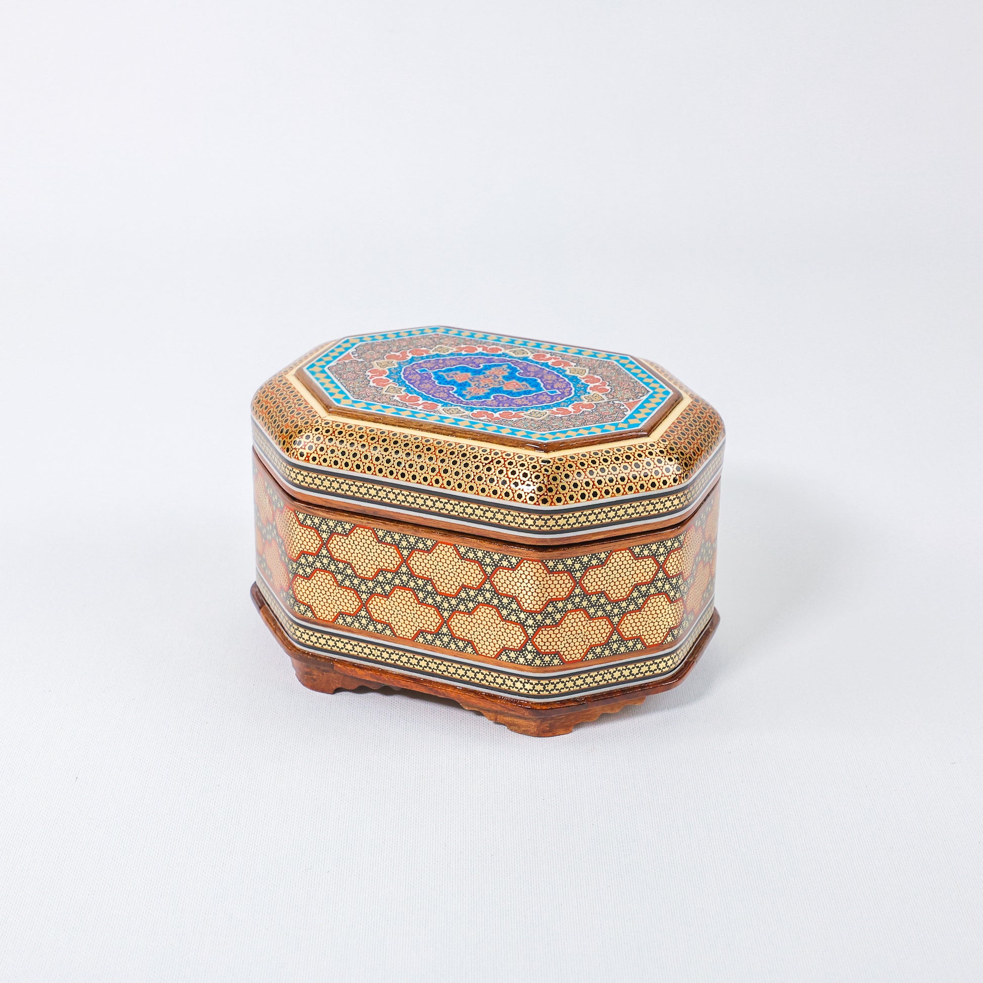 Octagonal Jewelry Box – Full Khatam – Tazhib Painting – Size 18 × 13 cm