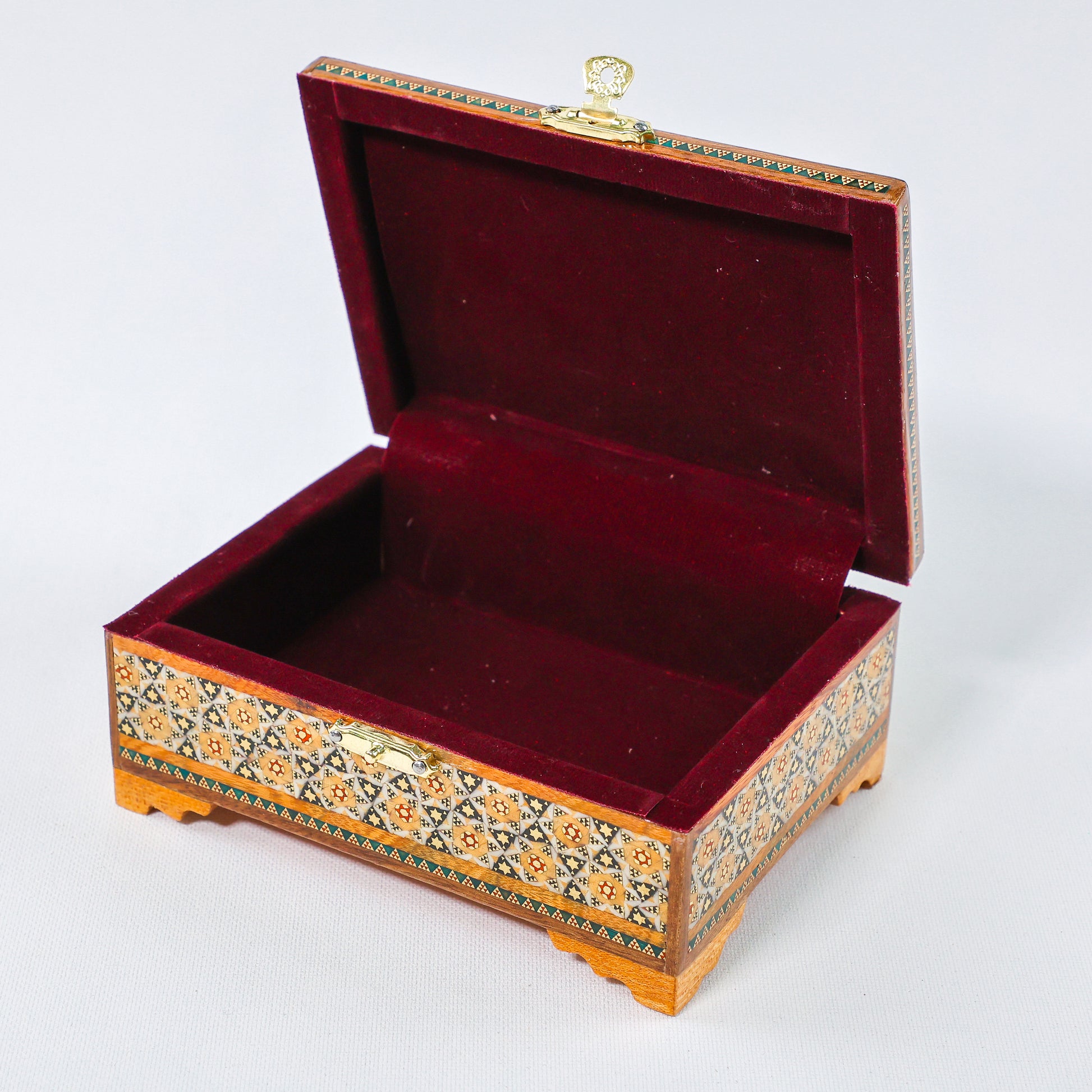 Painted Box – Tazhib Design – Velvet Interior – Golden Lock – Size 10 × 14 cm