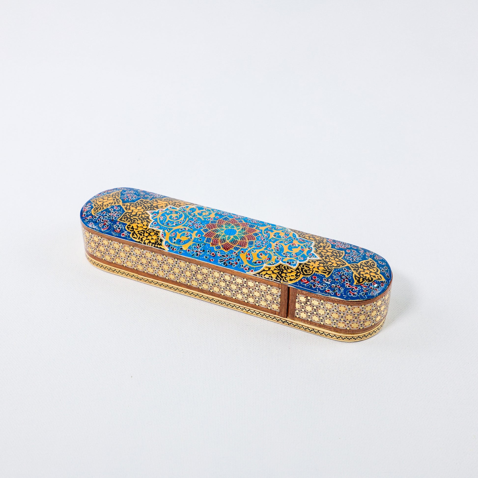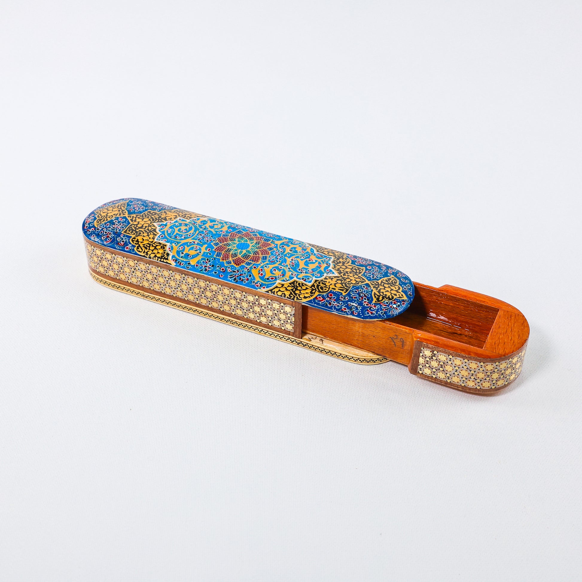 علبة أقلام – نظام سحب – تشطيب زجاجي – تصميم إسلامي (إسليمي) – المقاس 20 سم
