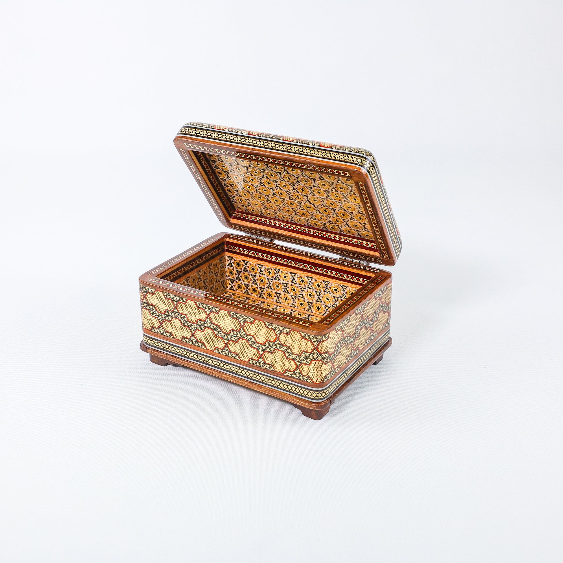 Rectangular Jewelry Box – Full Khatam – Hand-Painted – Khatam Interior – Size 12 × 18 cm
